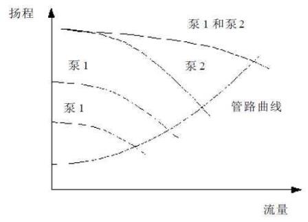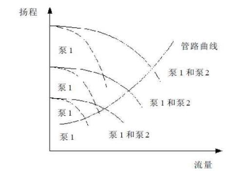 (2)應(yīng)使單臺(tái)水泵的性能曲線與管路性能曲線有交點(diǎn),而且交點(diǎn)不要離水泵性能曲線末端太近,這樣就不會(huì)發(fā)生氣蝕現(xiàn)象。